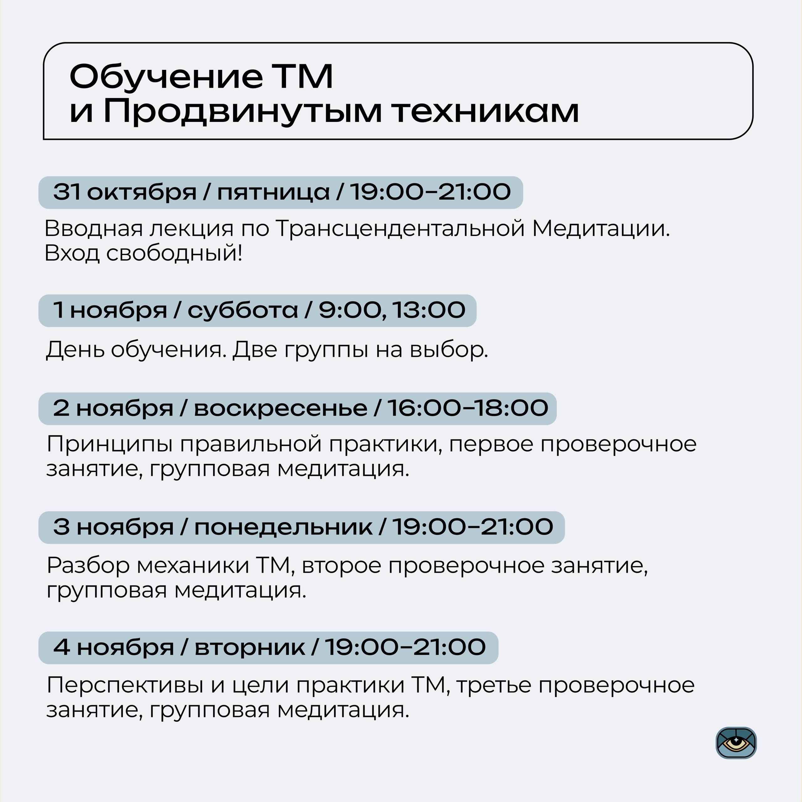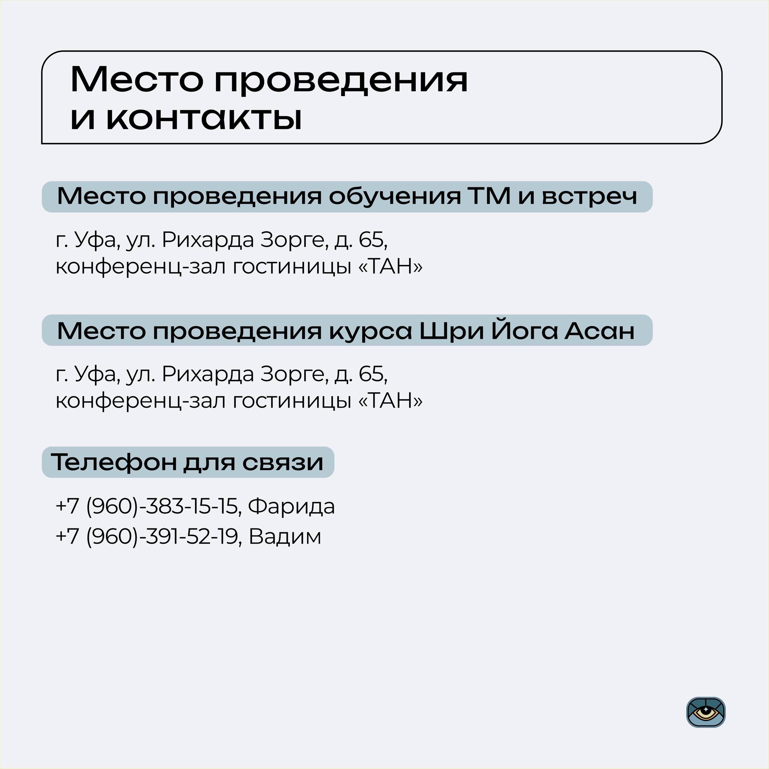 Уфа! С 30 октября по 5 ноября приглашаем на обучение Трансцендентальной Медитации и Продвинутым техникам ТМ, ознакомительный курс Шри Йога Асан и встречи-сатсанги с Михаилом Молдовановым.