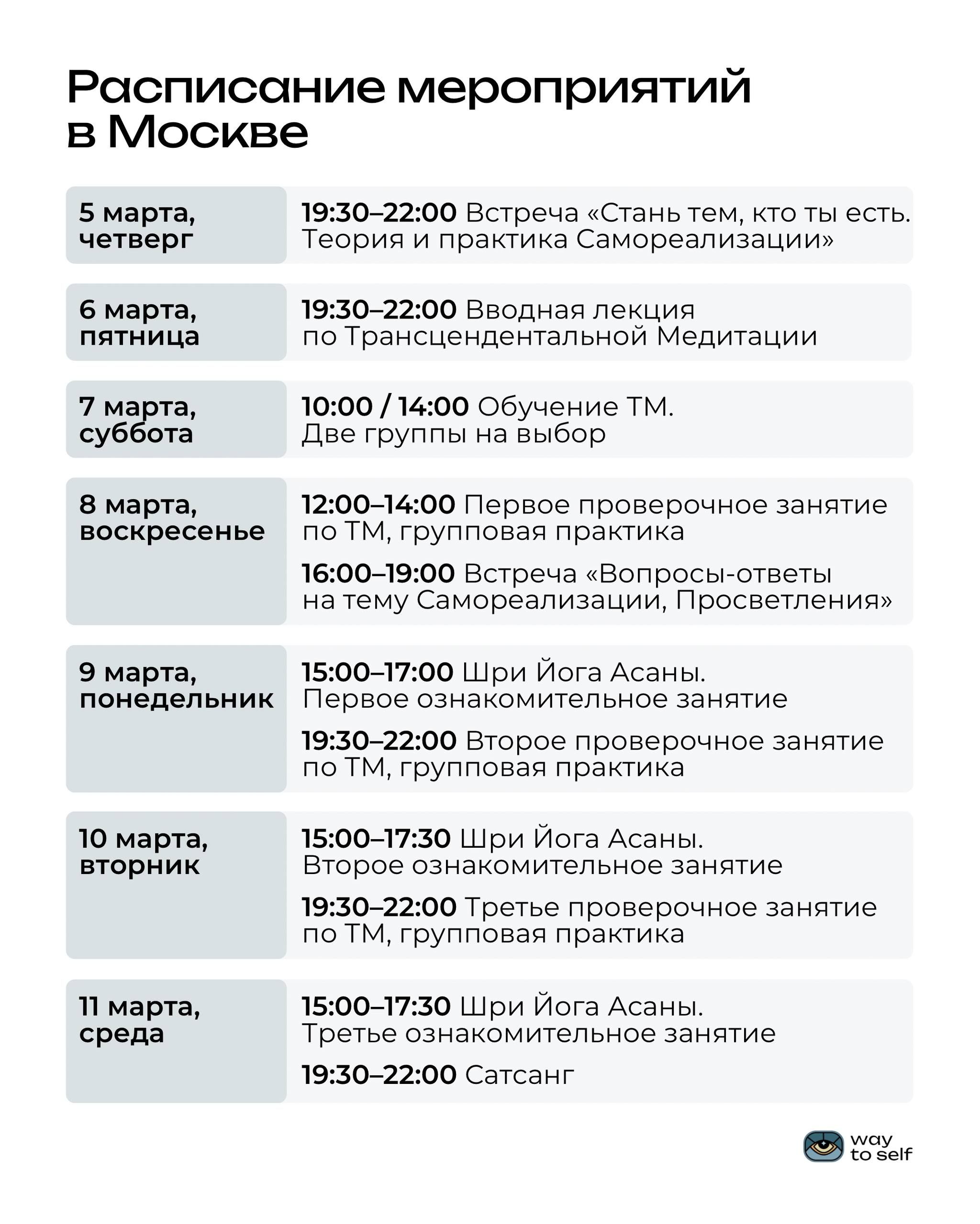 На нашем сайте waytoself.ru в разделе "Совместные практики" вы можете найти единомышленников в своём городе, а также присоединиться к уже существующим группам.28.02.2026
