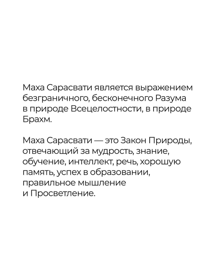 Также Маха Сарасвати отвечает за тонкие качества сердца и поэтому способствует гармонизации семейных отношений.