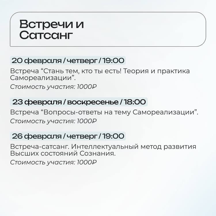 На этой встрече вы можете задать волнующие вас вопросы на тему Реализации и Просветления и тем самым поспособствовать вашей эволюции.