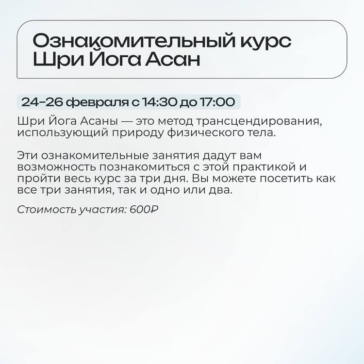 📖ознакомительный трёхдневный курс Шри Йога Асан,
