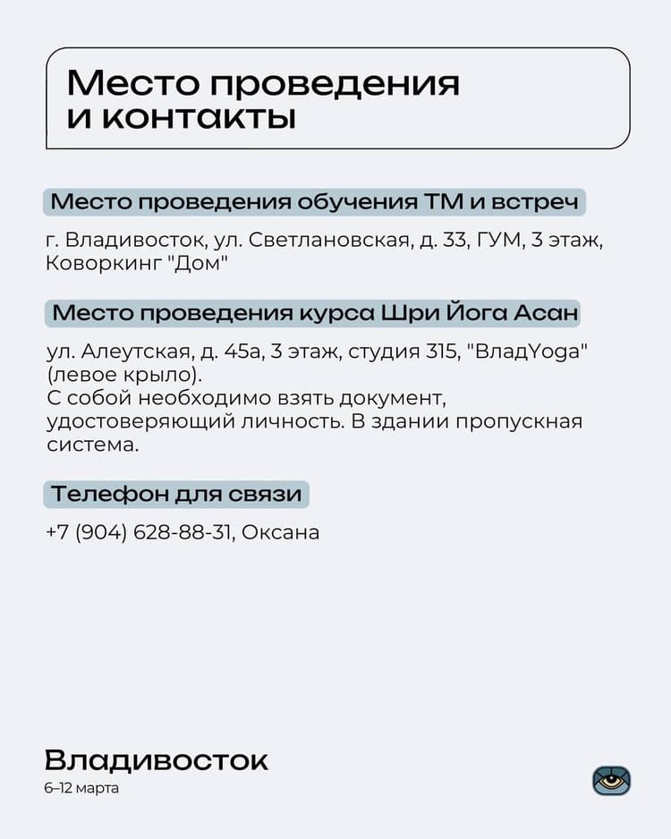 Приводите своих близких и знакомых, ждём всех! Не упускайте эту возможность, обучение во Владивостоке проводится 1 раз в год.