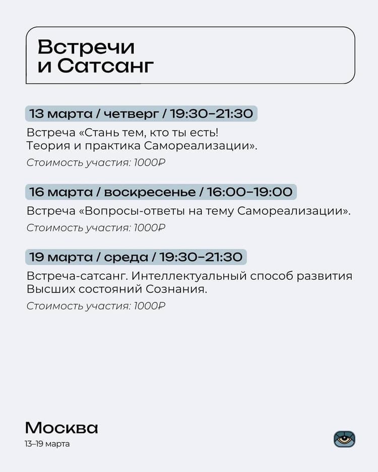На этой встрече есть возможность задать все волнующие вас вопросы на тему Реализации и Просветления.