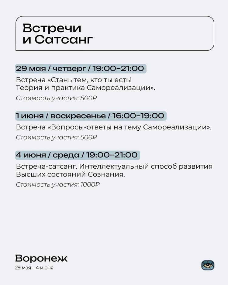 Завтра в Воронеже в 16:00 состоится встреча «Вопросы-ответы на тему Самореализации».
