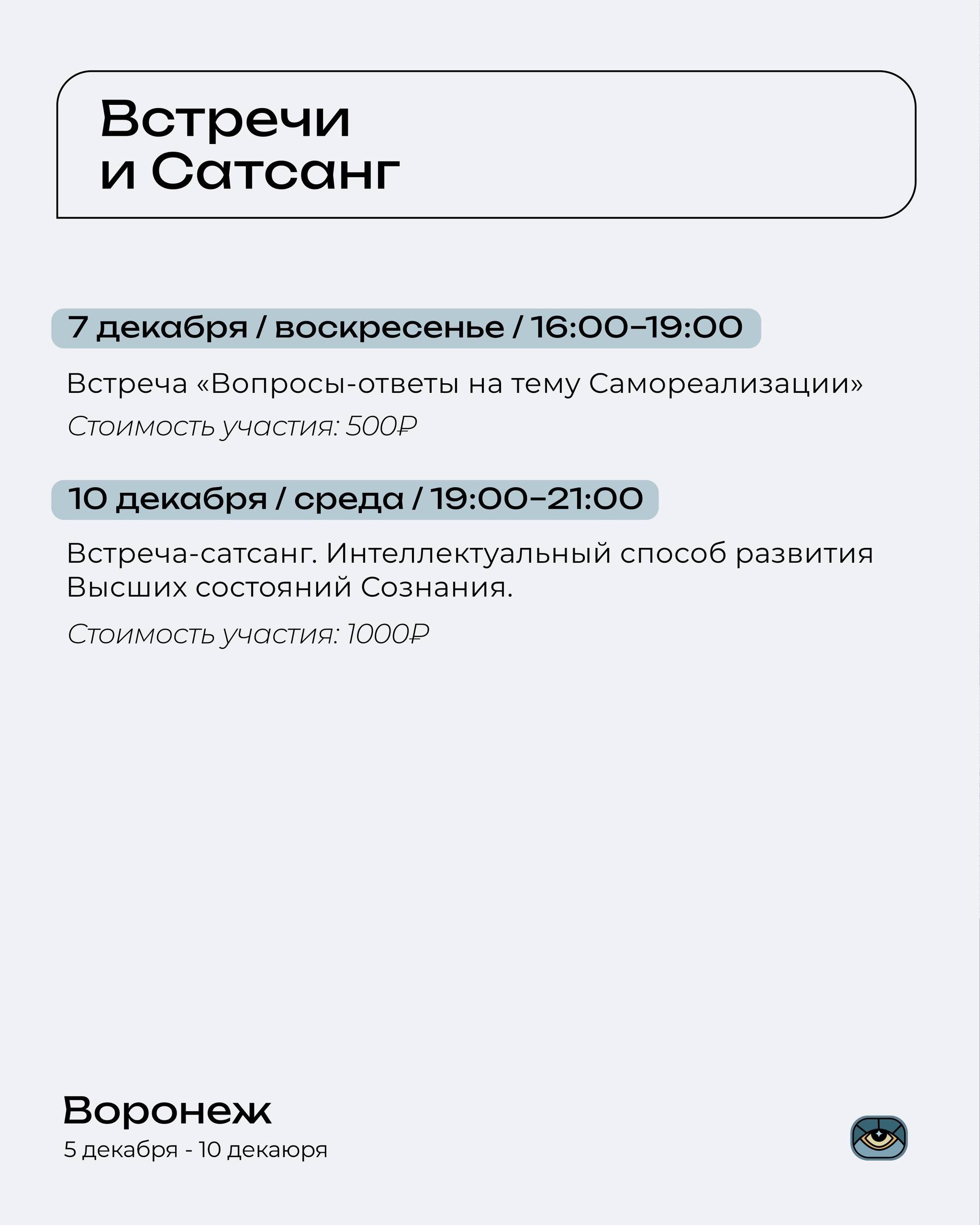 Семинары-интенсивы – это возможность для каждого из участников встретиться с самим собой. Эти семинары я провожу для тех, кто действительно стремится к раскрытию истинной природы Я, к познанию Бога, к познанию истинной природы Жизни. На этих семинарах мы используем методы и подходы, разработанные Ведической Традицией для людей, живущих в социуме.