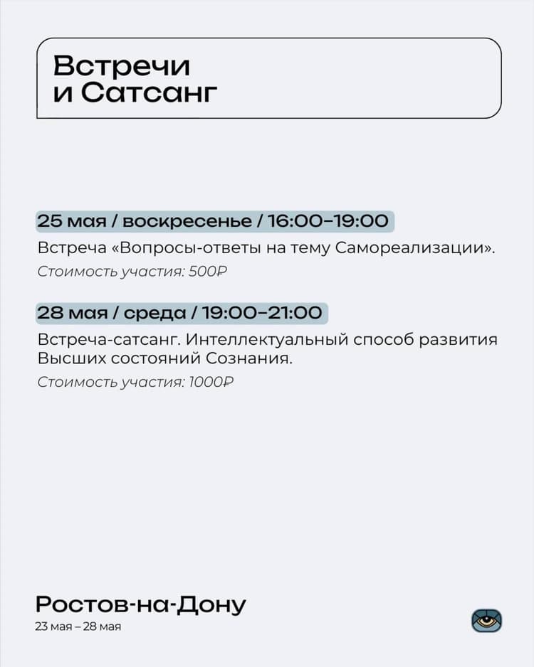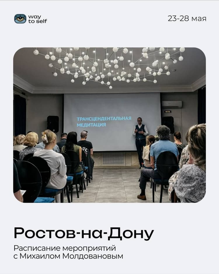 Сегодня в 19:00 в Ростове-на-Дону состоится Сатсанг с Михаилом Молдовановым.«САТСАНГ - это собрание людей во имя Истины.