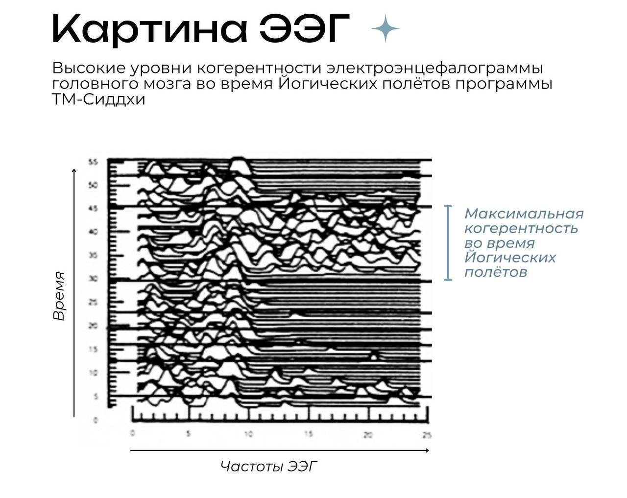 Исследования показывают, что у людей с более стабилизированным опытом трансцендентного сознания обнаруживается более высокая когерентность (согласованность) ЭЭГ волновых процессов мозга, соответствующая максимуму координации между умом и телом. В то же время, высокий уровень когерентности ЭЭГ в значительной степени соотносится с большей эффективностью постижения новых идей, более твердыми моральными представлениями, более высоким вербальным коэффициентом интеллекта (IQ) и более высокой неврологической эффективностью. Таким образом, результаты исследований позволяют сделать вывод, что творческие способности, опыт высших состояний сознания и когерентность волновых процессов мозга взаимосвязаны.